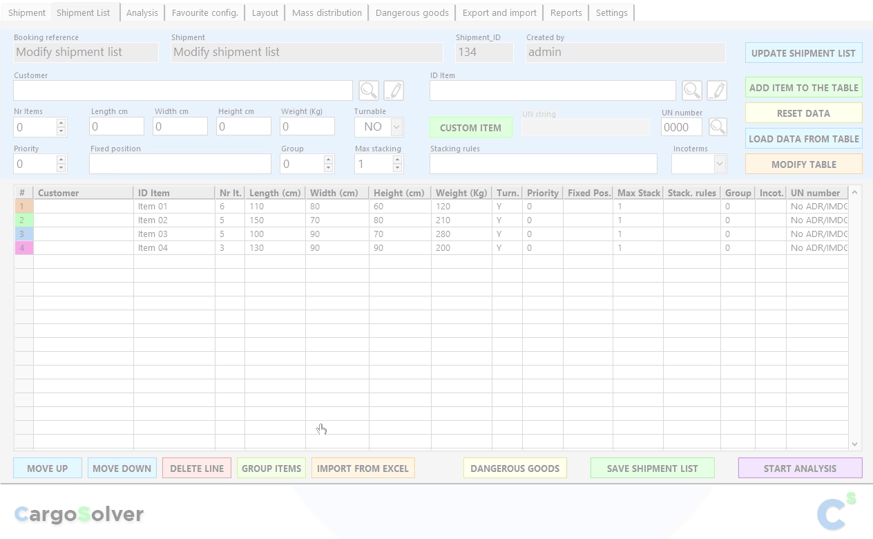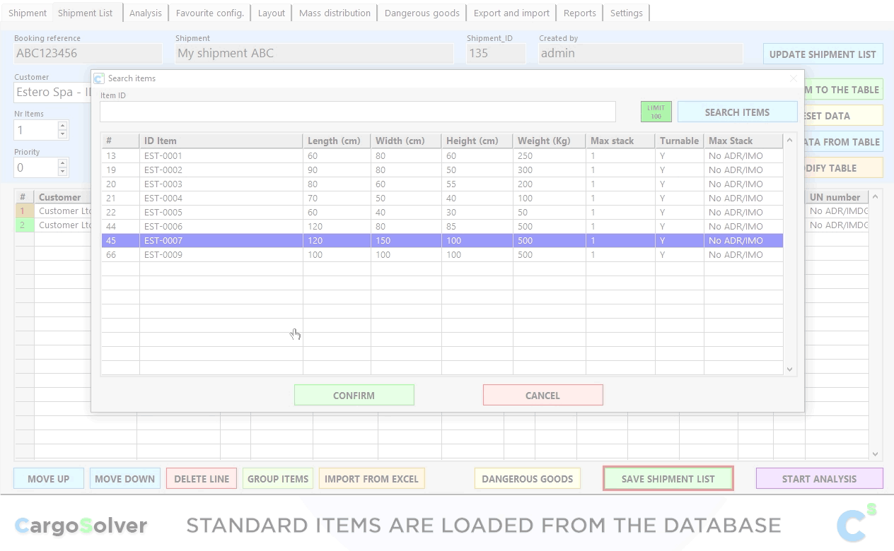 CargoSolver gives you the flexibility to add items with the dimensions you need but also allows you to create a database with your customers and items with predefined dimensions.